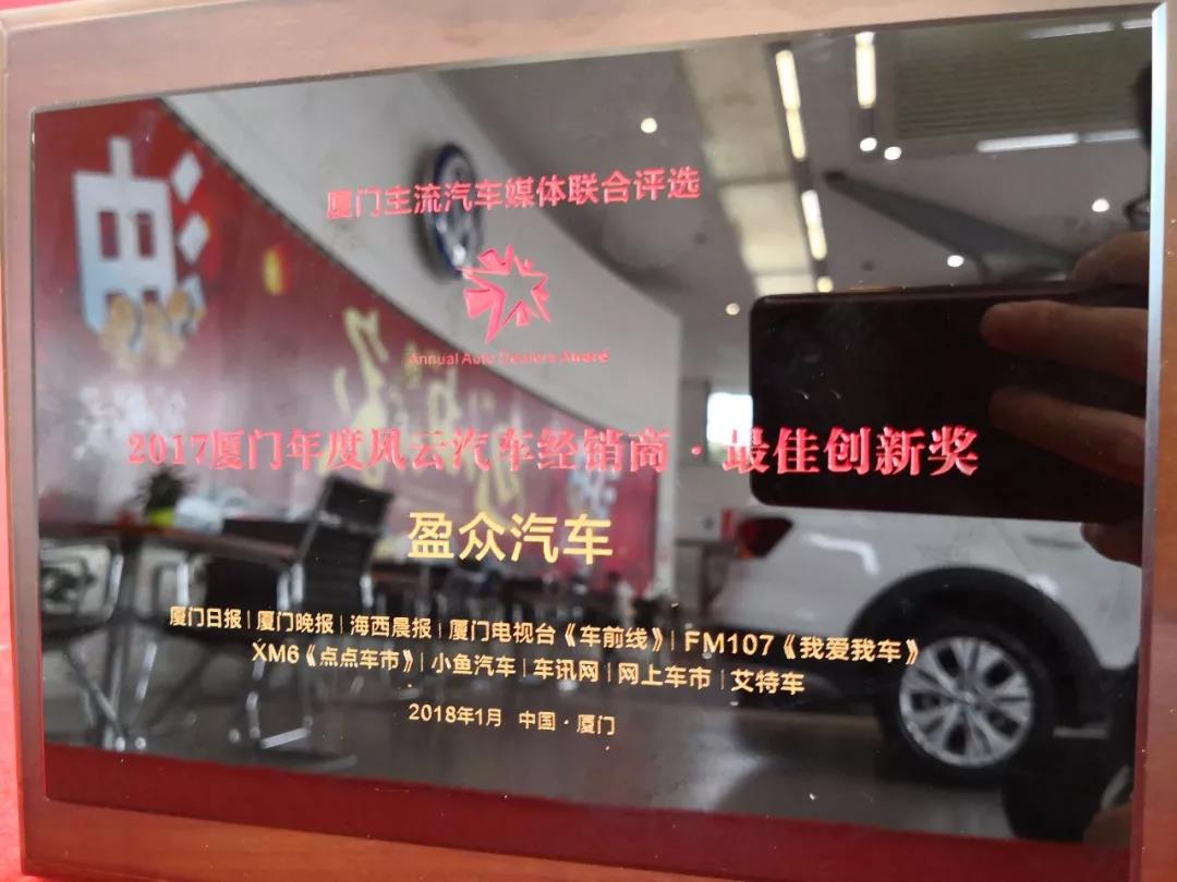盈眾汽車榮獲2017廈門年度風(fēng)云汽車經(jīng)銷商·最佳創(chuàng)新獎等殊榮