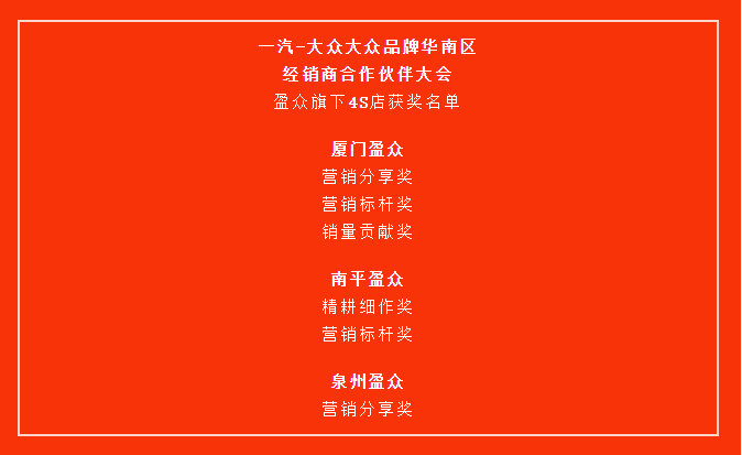 喜報(bào) | 熱烈祝賀盈眾一汽-大眾團(tuán)隊(duì)榮獲華南區(qū)多項(xiàng)榮譽(yù)