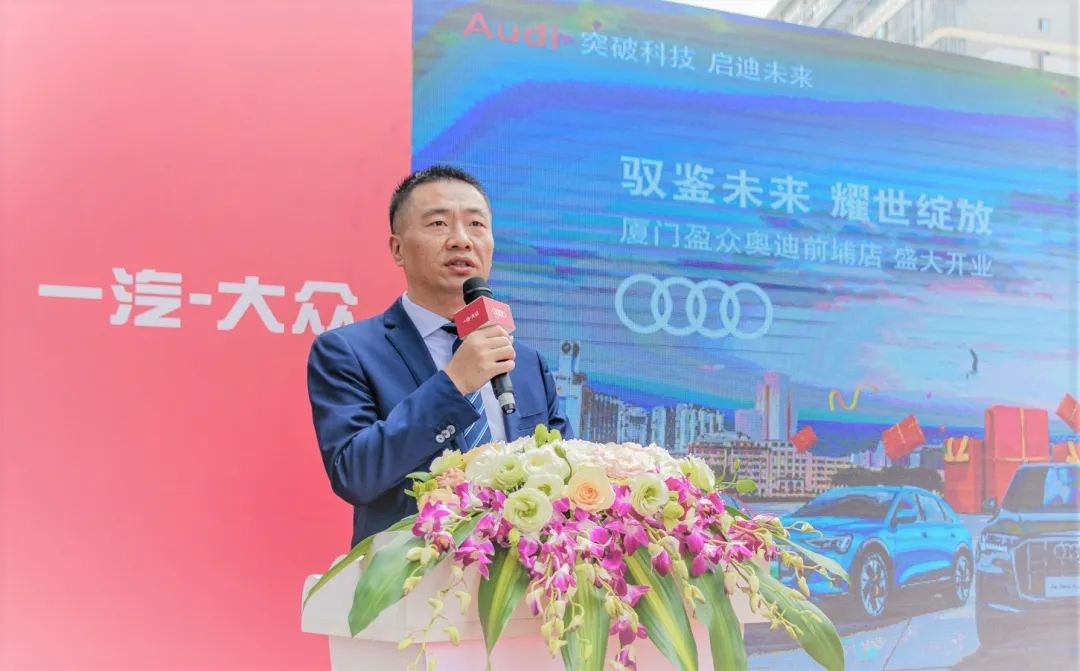 一汽-大眾奧迪銷售事業(yè)部東南區(qū)區(qū)域主管銷售經(jīng)理葉鵬向廈門盈眾奧迪送上了誠摯祝福,并且表達(dá)了自己的希冀:希望廈門盈眾奧迪前埔店全新數(shù)字化體驗(yàn)中心以其示范效應(yīng),帶動一汽-大眾奧迪品牌在新區(qū)域的發(fā)展與蓬勃;也衷心希望廈門盈眾奧迪前埔店能夠不忘初心,砥礪前行,繼續(xù)為廣大客戶提供優(yōu)越的購車服務(wù),為盈眾集團(tuán)創(chuàng)造更多效益,也為一汽奧迪的份額做出更大的貢獻(xiàn)。