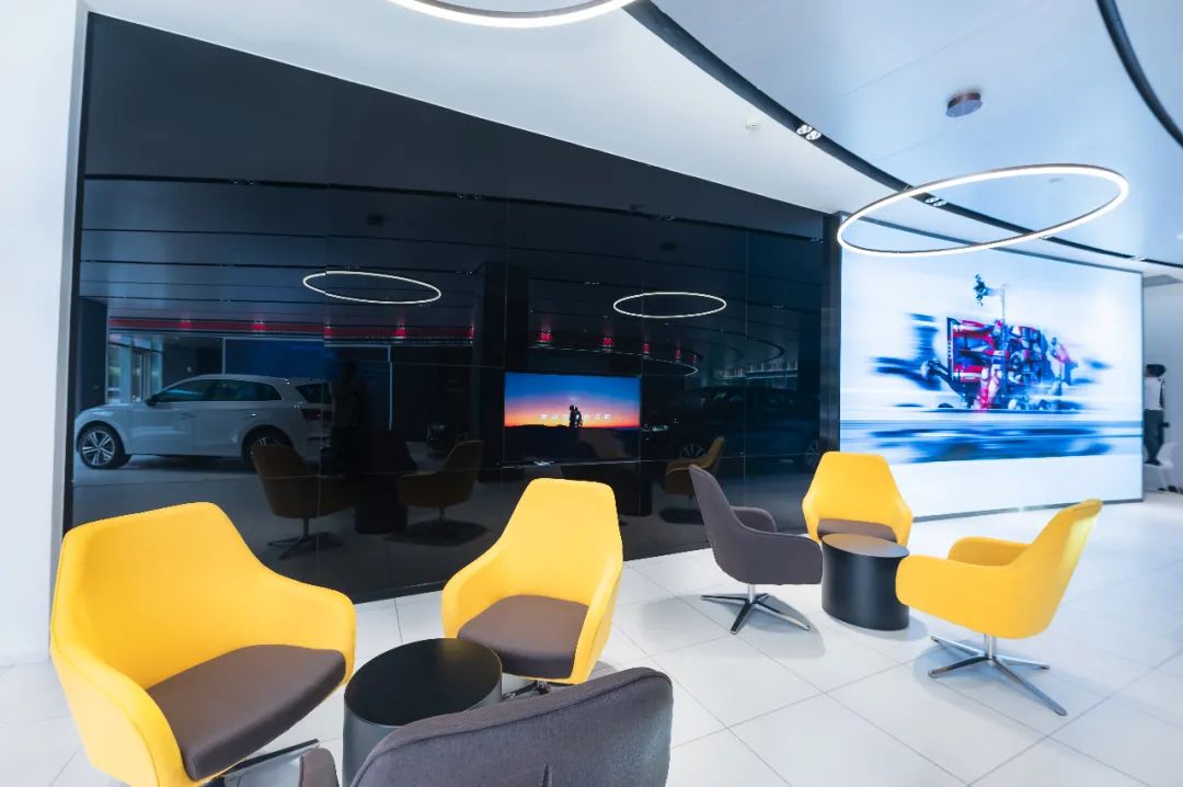 客休區(qū)和洽談區(qū)充滿活力的色彩搭配帶來更輕松愉悅的賞車環(huán)境。進(jìn)入展廳,你不僅可以獲得豐富有趣的個(gè)性化品牌體驗(yàn),還能覓得片刻愜意的閑暇時(shí)光。
