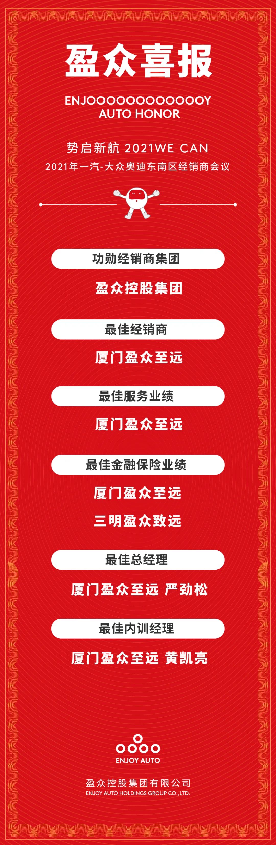 盈眾榮獲一汽-大眾奧迪功勛經(jīng)銷商等多項(xiàng)榮譽(yù)