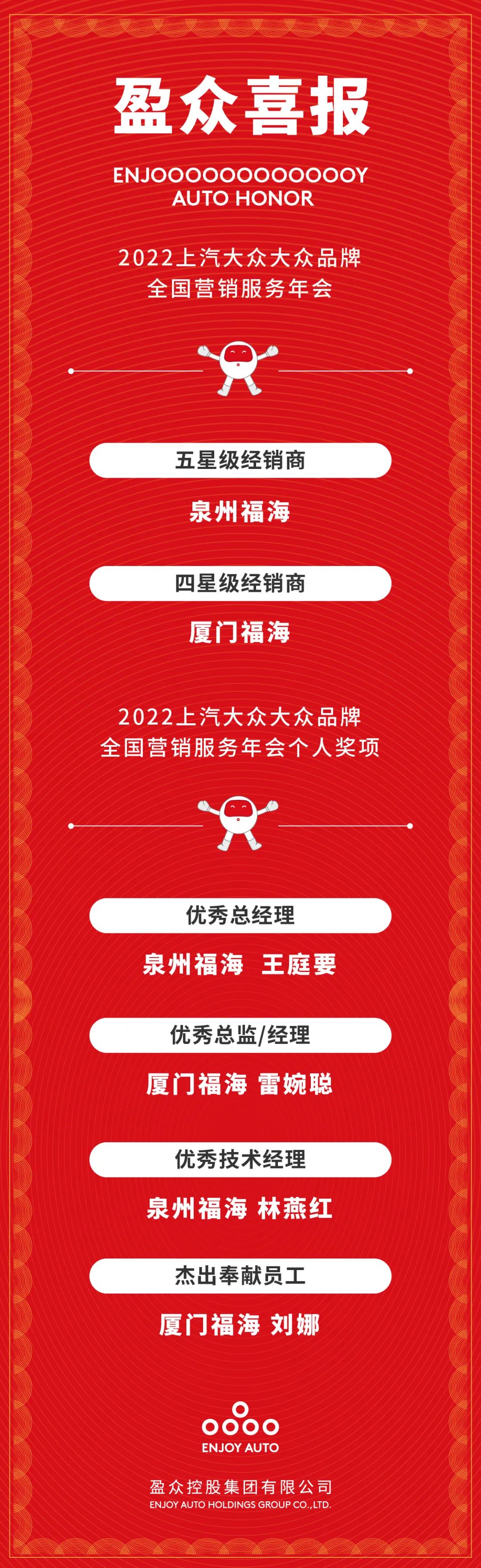 喜報(bào) | 盈眾榮獲2021年度上汽大眾大眾品牌五星級(jí)經(jīng)銷商等多項(xiàng)榮譽(yù)