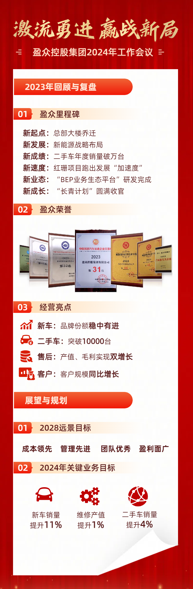 2023年回顧與復(fù)盤、展望與規(guī)劃、要求與期望三部分切入總結(jié)集團(tuán)2023年各項工作的發(fā)展,部署2024年及未來5年工作重點(diǎn)。