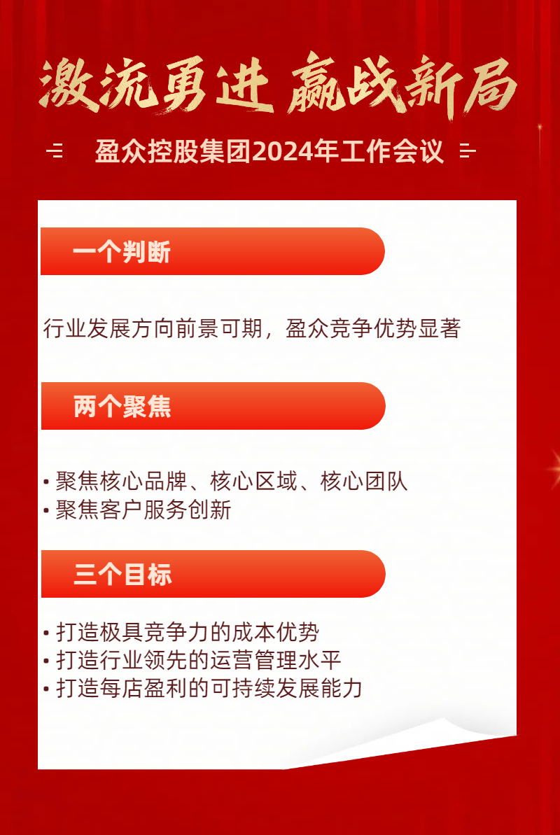 報告最后,易總對全體干部提出了要求與期望,希望大家于盈眾同舟共濟(jì),顧全大局;于團(tuán)隊身先士卒,敢打勝仗;于自己廉潔奉公,守正創(chuàng)新;于過程全情投入,全程緊盯;于結(jié)果勇于擔(dān)責(zé),言出必踐。“2024年注定是延續(xù)巨大挑戰(zhàn)的一年,望全體同仁,不畏萬里關(guān)山,在激流中奮勇前進(jìn),贏取勝利新局面。”