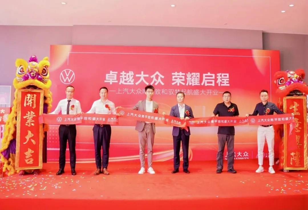 上汽大眾華南區(qū)總經理徐子看、盈眾控股集團副總經理尤猛杰、上汽大眾大眾品牌華南營銷大區(qū)ID營銷副總經理張榕、盈眾上汽大眾品牌總監(jiān)王庭要、盈眾業(yè)務四部總經理陳隆龍、南平致和總經理許恩華共同為南平致和上汽大眾4S店開業(yè)剪彩。